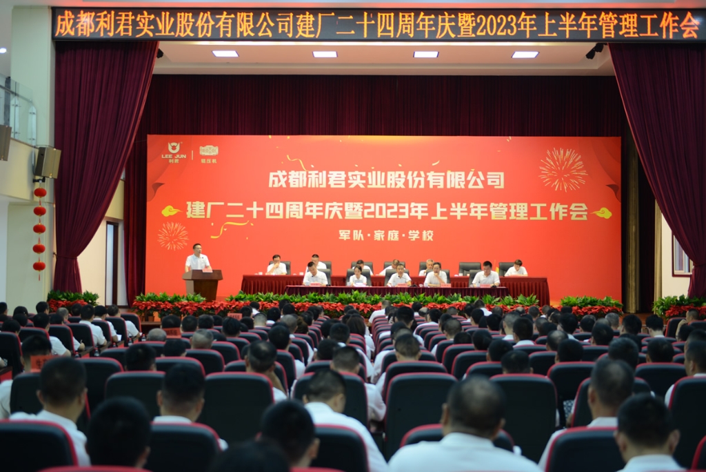 2023年7月3日,成都利君實業(yè)股份有限公司在成都市龍泉驛區(qū)成都利君科技有限責(zé)任公司員工禮堂舉行公司建廠二十四周年慶暨2023年上半年管理工作會議