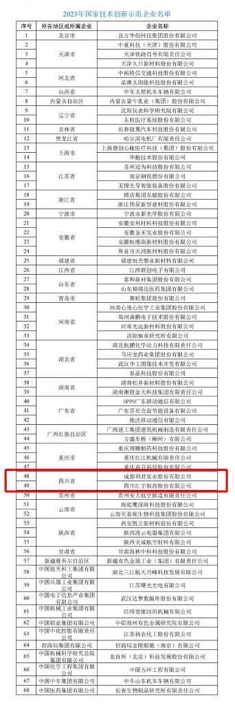 工業(yè)和信息化部近日印發(fā)通知,公布了2023年國家技術(shù)創(chuàng)新示范企業(yè)名單,四川2家企業(yè)上榜,成都利君實(shí)業(yè)股份有限公司榜上有名。